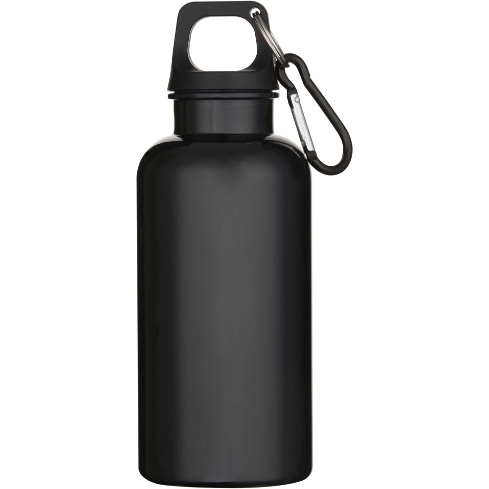 Az RCS tanúsítvánnyal rendelkező RPET-ből készült, tartós, mégis könnyű, 400 ml-es kulacs lehetővé teszi a folyamatos hidratálást. Tökéletes kísérő sportoláshoz, kirándulásokhoz vagy irodai használatra. A szimplafalú Oregon palack csavaros kupakkal rendelkezik, és bőséges felületet kínál bármilyen logó elhelyezésére. A mellékelt karabiner segítségével (mely mászásra nem alkalmas) a kulacs biztonságosan táskához rögzíthető. A termék megfelel az EFSA által jóváhagyott PET újrahasznosítási szabályoknak. Emblémázás: Tamponnyomás