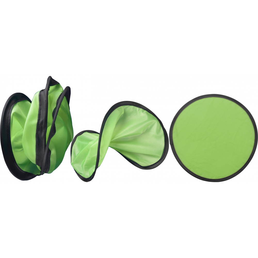 Összehajtható frizbi tasakkal. Kinyitva : d: 25 cm Emblémázás: Szitanyomás