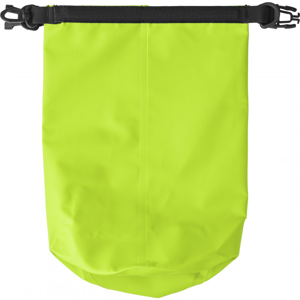 Vízálló táska. Levegővel kell feltölteni, hogy a vízben lebeghessen. Vállpánt nélkül. Emblémázás: Szitanyomás