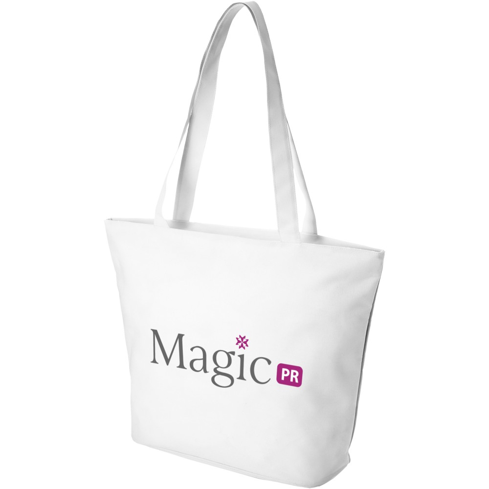 Legyen szó rendezvényről, strandról vagy bevásárlásról, a Panama cipzáras táska a tökéletes többcélú táska. A táska strapabíró 600D poliészterből készült, és egy cipzáras fő rekesszel rendelkezik. A táska belsejében található kis cipzáras zseb helyet biztosít néhány apró tárgynak, például tollnak vagy kulcsoknak. Fülek magassága 34 cm, így vállon is hordható. Emblémázás: Szitanyomás