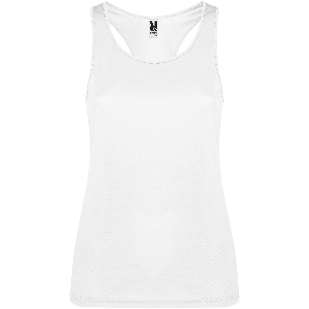 Technikai, légáteresztő, könnyen mosható és gyorsan száradó anyag. Bordázott karkivágások és nyakrész. Racerback kialakítás és oldalvarrások. Eltávolítható címke. 100% Polyester, 140 g/m2. Emblémázás: Szublimálás, Szitanyomás
