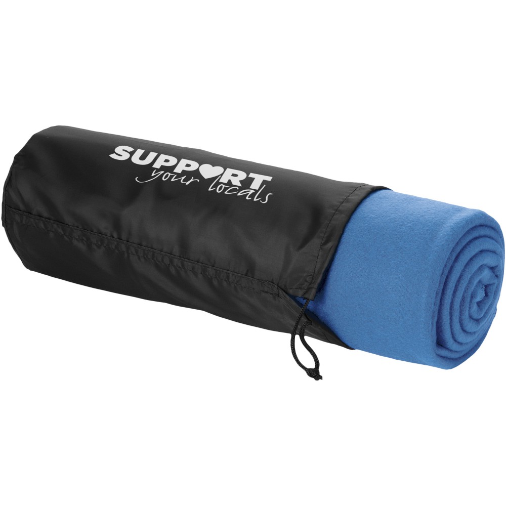 Egyszínű takaró 100% polár, 200 g/m2-es puha és kényelmes anyagból. Tekerje fel a takarót, és helyezze be a praktikus, húzózsinórral záródó tasakba, így könnyen tárolhatja anélkül, hogy sok helyet foglalna. A takaró mérete: 150 x 120 cm. Csomagolt méret: d:14 x 30 cm. Emblémázás: Hímzés, Szitanyomás