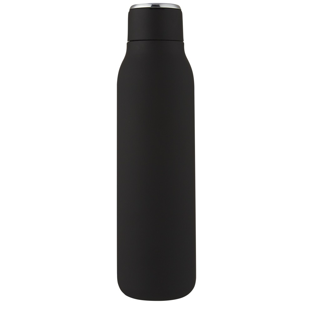 A Marka palack rozsdamentes acél vákuumkonstrukcióval és rézszigeteléssel rendelkezik, amely több órán keresztül melegen vagy hidegen tartja az italokat. A szigetelt 18/8-as rozsdamentes acél konstrukció megakadályozza a páralecsapódást a palack külső oldalán, a divatos porszórt felület pedig extra tartóssá teszi. Felcsavarható fedéllel és tartós, cinkötvözetből készült fogóval is rendelkezik. BPA-mentes, a német élelmiszerbiztonsági törvény (LFGB) szerint tesztelt és jóváhagyott. Ftaláttartalomra tesztelve és jóváhagyva a REACH előírásai szerint. A legtöbb szabványos autós pohártartóba illeszkedik. Szivárgásmentes. Szénsavas italokkal nem használható. Mosogatógépben nem mosható és mikrohullámú sütőben történő melegítésre nem alkalmas. Űrtartalom: 600 ml. Újrahasznosított karton díszdobozban. Emblémázás: Bögredekor, Gravírozás, Tamponnyomás, UV nyomtatás