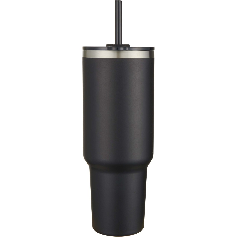 RCS tanúsítvánnyal rendelkező duplafalú rézvákuum szigetelésű pohár, amely 91%-ban használt rozsdamentes acélból készült és legalább 24 órán keresztül hidegen tartja az italokat. Tritan szívószállal rendelkezik, és csúsztatható fedél funkcióval van ellátva, amely megakadályozza a kiömlést. A 100%-ban újrahasznosított műanyag nyomófedél biztonságosan tartja a szívószálat a helyén, és könnyen forgatható, hogy hozzáférj az ivónyíláshoz. Tartós külső porfestett bevonat. Űrtartalom: 1200 ml. Kézi mosogatás javasolt. Stanley hasonmás. Emblémázás: Gravírozás