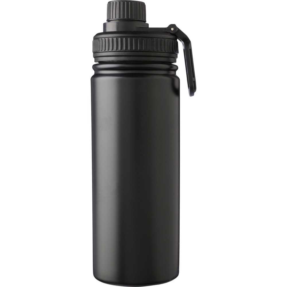 Duplafalú palack PP fedéllel, PP csavaros adagolóval és hordozófogantyúval. A belső rész 304-es, a külső 201-es rozsdamentes acél . Egyedi csomagolásban, barna kartondobozban. Űrtartalom: 500 ml. Emblémázás: Gravírozás