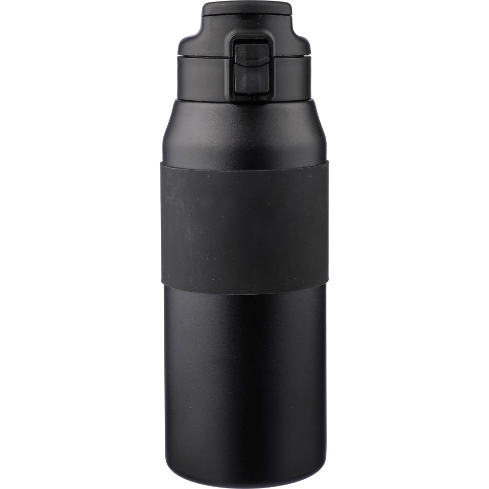 Duplafalú palack szilikon fogantyúval a testen, szívószállal, PP fedéllel és hordozófogantyúval. 304-es rozsdamentes acélból készült. Nyomógomb a kifolyónyílás kinyitásához vagy lezárásához. A tartalmat 8 órán keresztül tartja melegen és 12 órán keresztül hidegen. Egyedi csomagolásban, barna kartondobozban. Űrtartalom: 800 ml. Emblémázás: Gravírozás