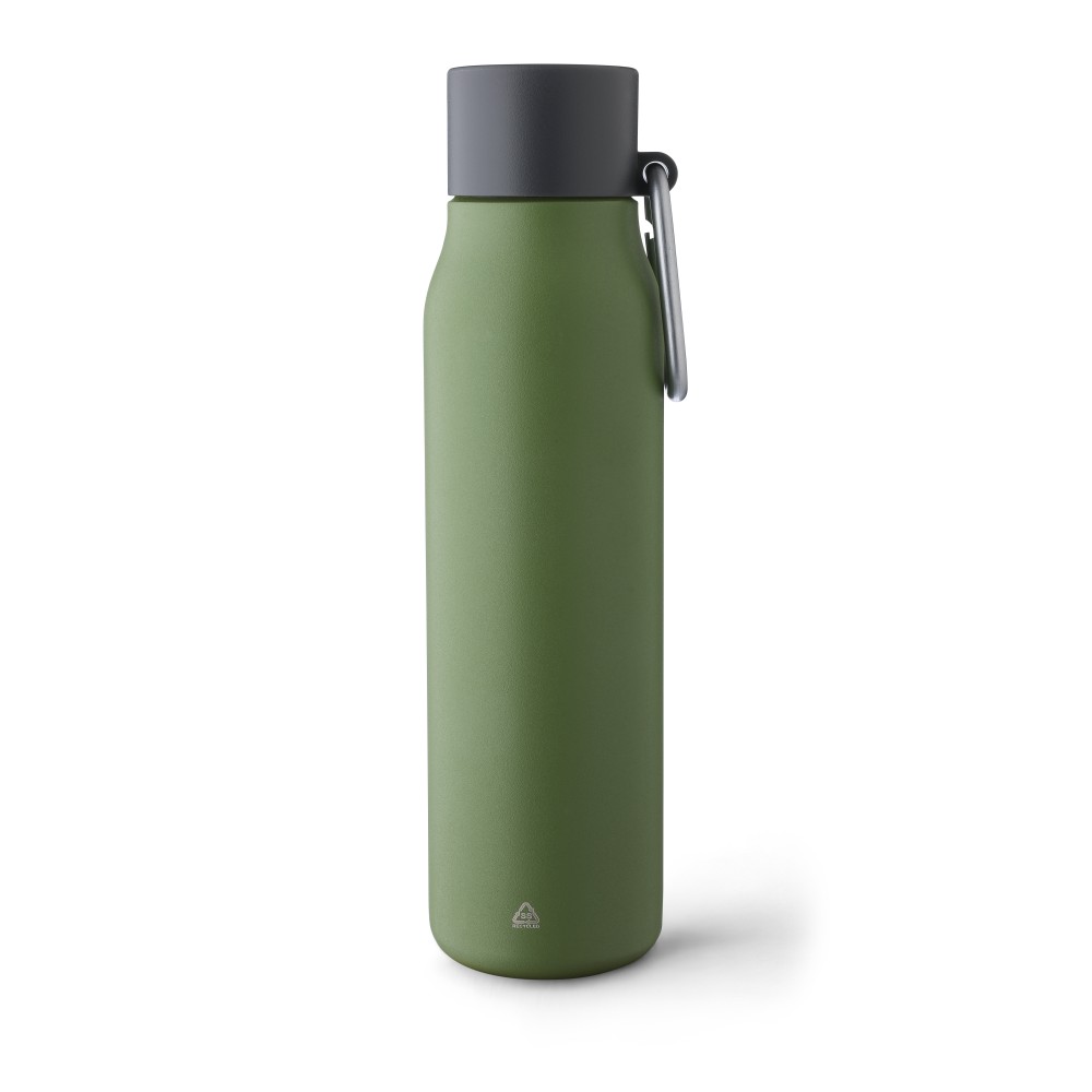 Újrahasznosított rozsdamentes acélból készült palack (600 ml-es). A belső anyaga 304-es, a külső anyaga pedig 201-es rozsdamentes acél. Szivárgásmentes PP kupakkal és alumínium karabinerrel. A karabiner mászáshoz nem alkalmas. A palack a benne tárolt italt 6 órán át melegen vagy 9 órán át hidegen tartja. Az újrahasznosított anyagra utaló logó a palackra van gravírozva. Csomagolása barna papírdoboz. Emblémázás: Gravírozás, Körszita, Tamponnyomás