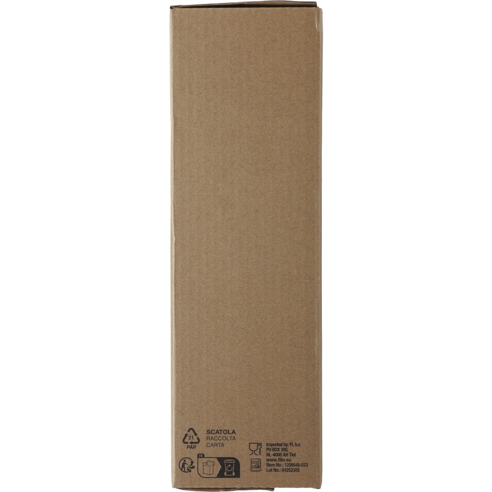 800 ml-es duplafalú palack. A belső 304-es, a külső 201-es rozsdamentes acélból készült. Csavaros PP kupakkal, mely fogantyúként és erős, mágneses telefontartóként is használható. Mosogatógépben nem tisztítható. Csomagolása barna papírdoboz. Emblémázás: Gravírozás