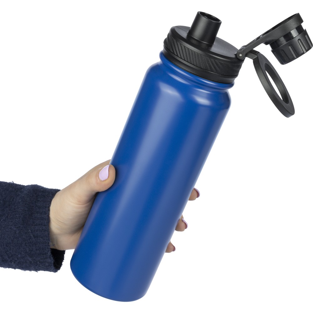 800 ml-es duplafalú palack. A belső 304-es, a külső 201-es rozsdamentes acélból készült. Csavaros PP kupakkal, mely fogantyúként és erős, mágneses telefontartóként is használható. Mosogatógépben nem tisztítható. Csomagolása barna papírdoboz. Emblémázás: Gravírozás