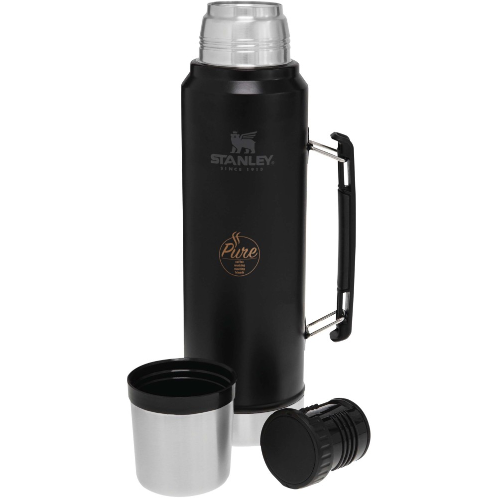 A nagy űrtartalmú, 1 literes Stanley palack robusztus felépítéssel és vákuumos szigeteléssel rendelkezik, hogy az italokat 24 órán át melegen vagy hidegen tartsa. A palack elég karcsú ahhoz, hogy egy kézzel is tartható legyen, és van egy csavaros kiöntő dugója is. A szigetelt fedél egyben pohárként szolgál. A palack mosogatógépben mosható, szivárgásmentes, párásodásgátló, törésálló és könnyen tisztítható. Csak emblémázva rendelhető. Minimum rendelési mennyiség: 5 db. Emblémázás: