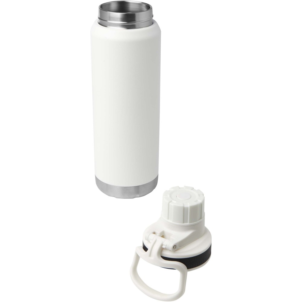 RCS tanúsítvánnyal rendelkező, rozsdamentes acélból készült, dupla falú, rézvákuum-szigetelésű kulacs csavaros, szivárgásmentes fedéllel. Széles nyílása megkönnyíti a töltést és a tisztítást, a fedélbe integrált hordozófül pedig praktikus szállítást biztosít. Szénsavas italokhoz is alkalmas. Külső felületén tartós porszórt bevonat található. Újrahasznosított karton díszdobozban kerül átadásra. Űrtartalom: 700 ml. Emblémázás: Bögredekor, Körszita