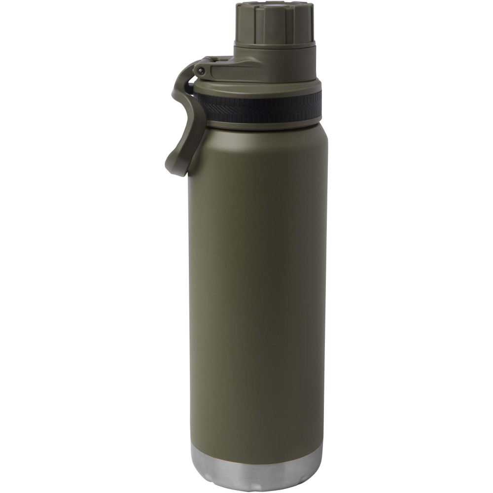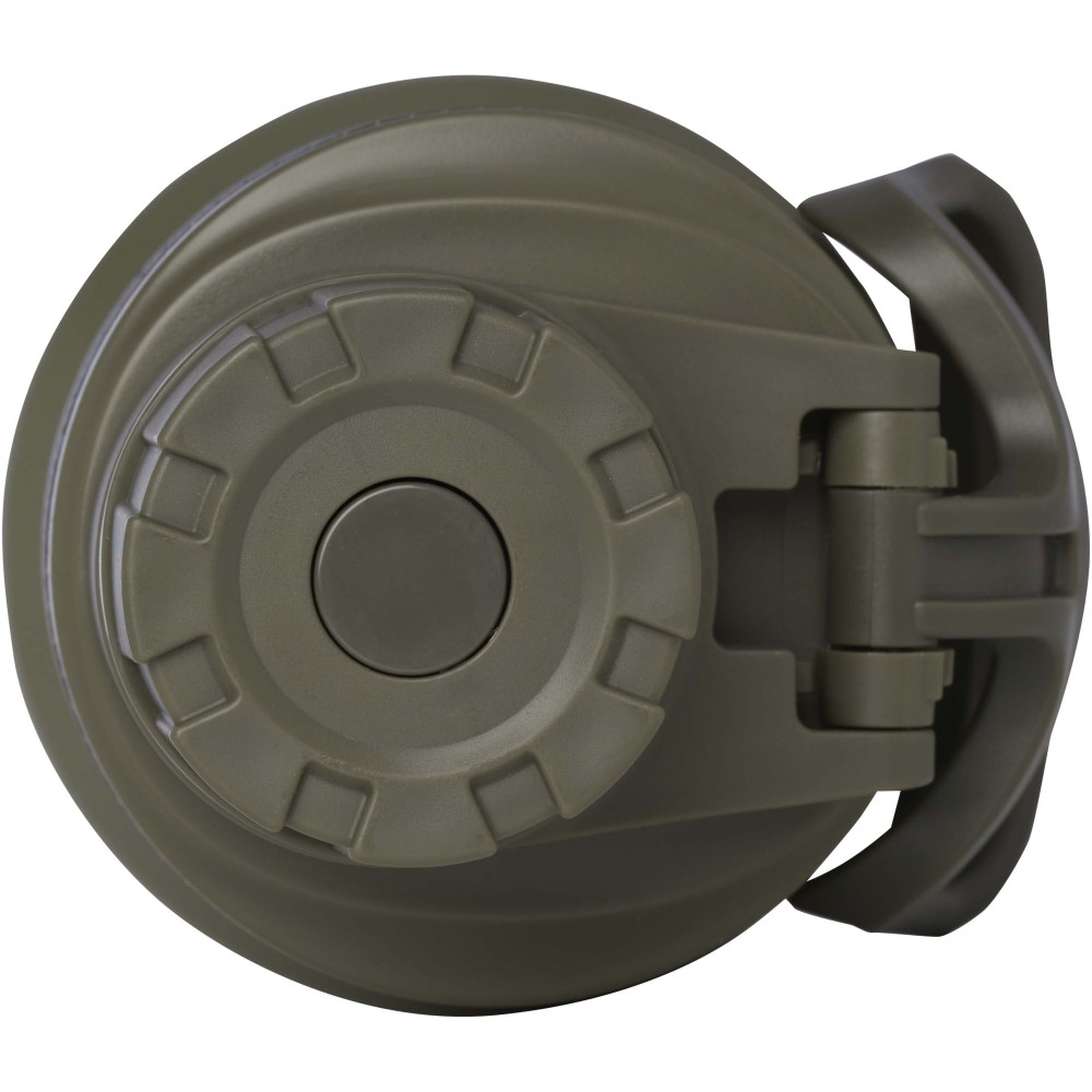 RCS tanúsítvánnyal rendelkező, rozsdamentes acélból készült, dupla falú, rézvákuum-szigetelésű kulacs csavaros, szivárgásmentes fedéllel. Széles nyílása megkönnyíti a töltést és a tisztítást, a fedélbe integrált hordozófül pedig praktikus szállítást biztosít. Szénsavas italokhoz is alkalmas. Külső felületén tartós porszórt bevonat található. Újrahasznosított karton díszdobozban kerül átadásra. Űrtartalom: 700 ml. Emblémázás: Bögredekor, Körszita