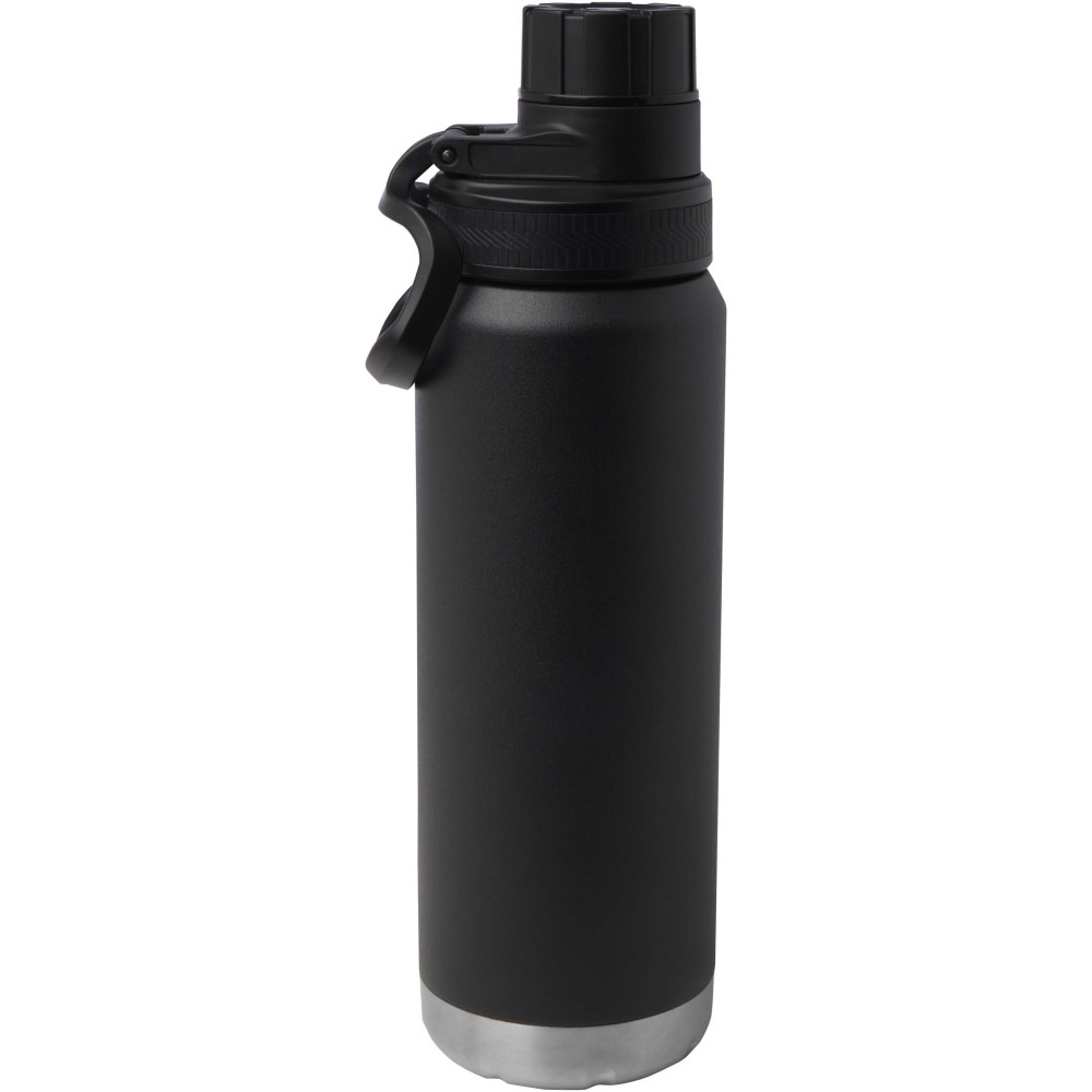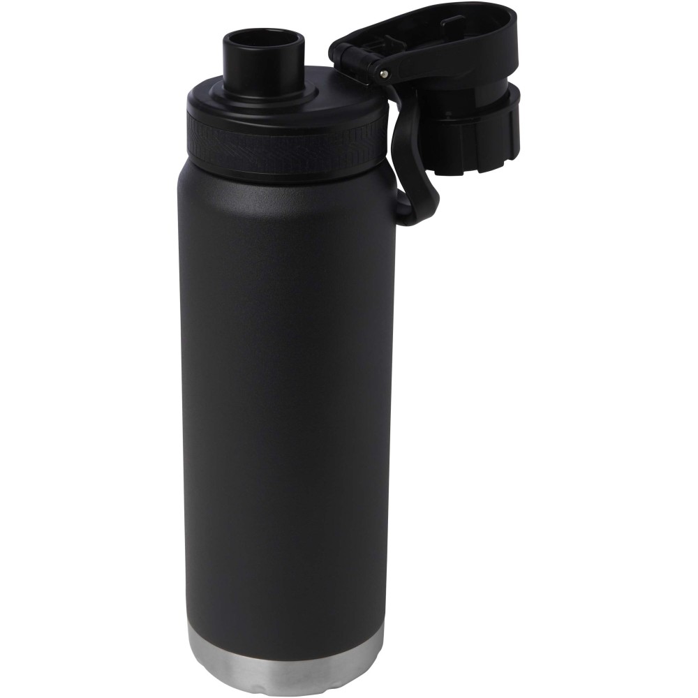 RCS tanúsítvánnyal rendelkező, rozsdamentes acélból készült, dupla falú, rézvákuum-szigetelésű kulacs csavaros, szivárgásmentes fedéllel. Széles nyílása megkönnyíti a töltést és a tisztítást, a fedélbe integrált hordozófül pedig praktikus szállítást biztosít. Szénsavas italokhoz is alkalmas. Külső felületén tartós porszórt bevonat található. Újrahasznosított karton díszdobozban kerül átadásra. Űrtartalom: 700 ml. Emblémázás: Bögredekor, Körszita