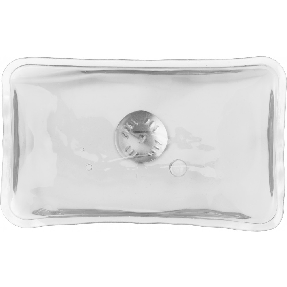 Melegítőpárna. A fémkorong többszöri megnyomásával aktiválható. Újbóli használat előtt tegyük forró vízbe. Emblémázás: Tamponnyomás
