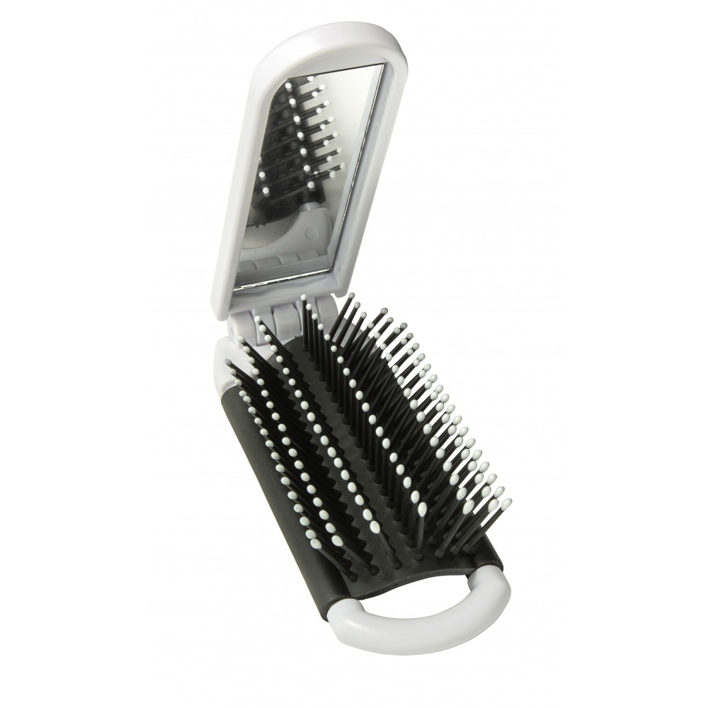 Összecsukható hajkefe tükörrel, fehér (1503-02): 1 db