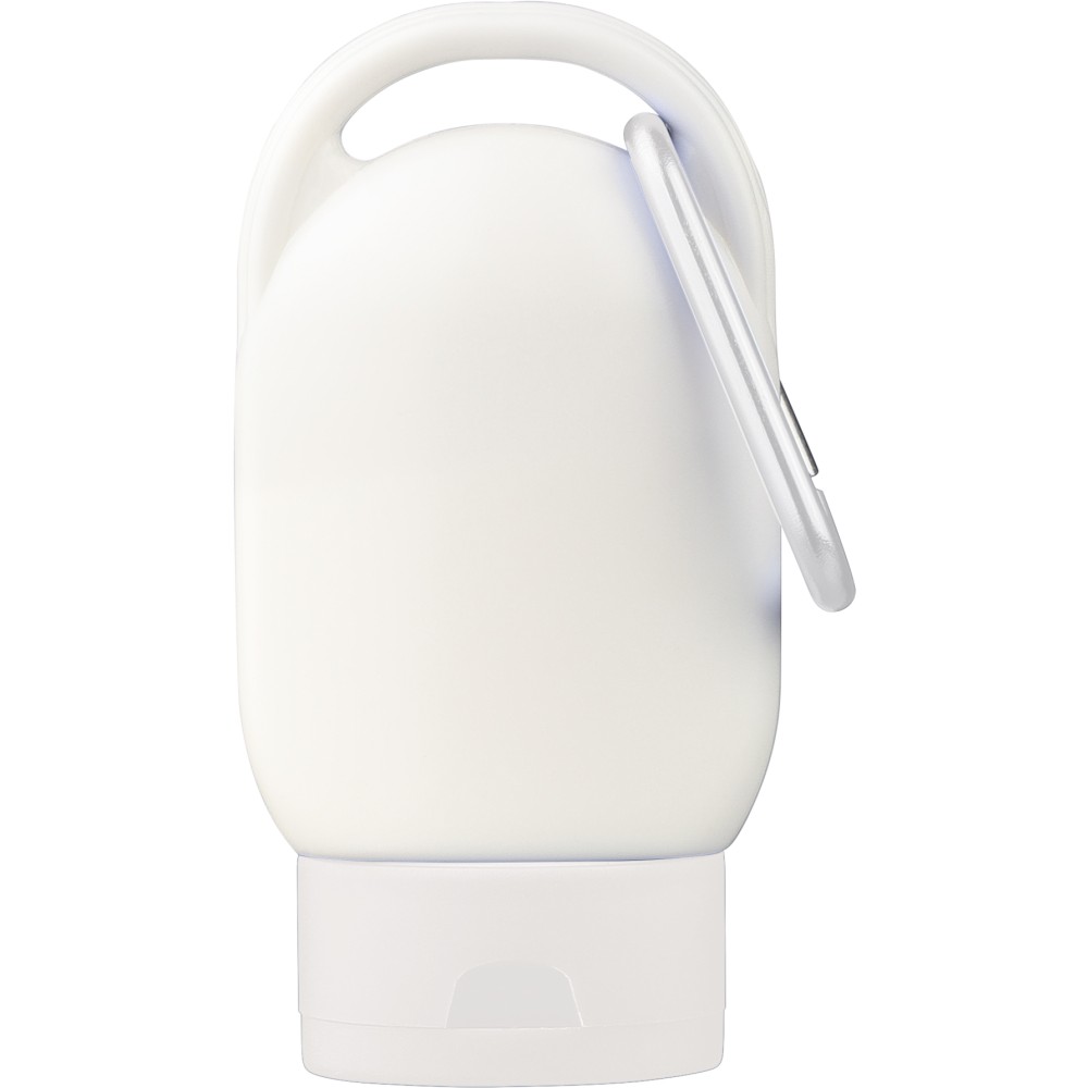SPF 30 faktorszámú naptej színes kupakkal és a kupak színével harmonizáló karabinerrel. A hátoldalon az összetevőlista és a minőségmegőrzési idő szerepel. Szavatossági ideje 2 év. 30 ml. Emblémázás: Matricázás, Tamponnyomás