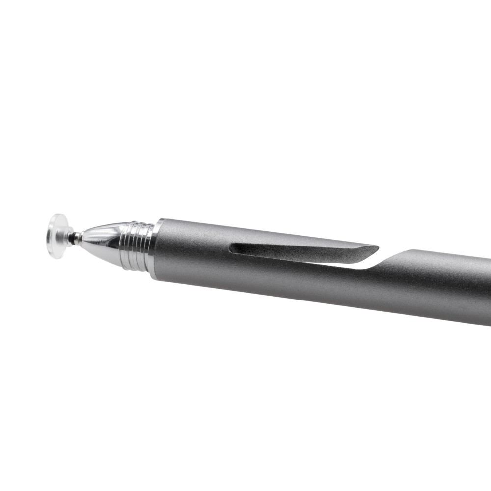 A Styllo 2 tökéletes választás azok számára, akik könnyedén szeretnének váltani a digitális és az analóg feladatok között. Egy egyszerű csavarással átalakul: papírhoz sima rollerball tollként, érintőképernyőhöz pedig kapacitív hálós vagy precíziós korongos tollként használható - ideális kreatív szakemberek számára. Masszív alumínium teste könnyű hordozhatóságot és elegáns, profi megjelenést biztosít. Minden érintőképernyős eszközzel kompatibilis, nincs szükség elemekre, így mindig használatra kész. Fekete papírdobozban érkezik. Emblémázás: Gravírozás