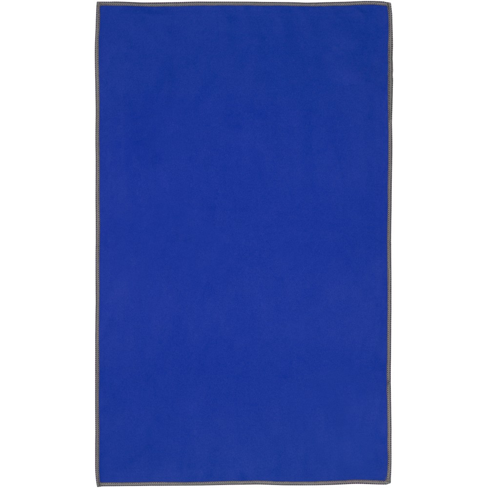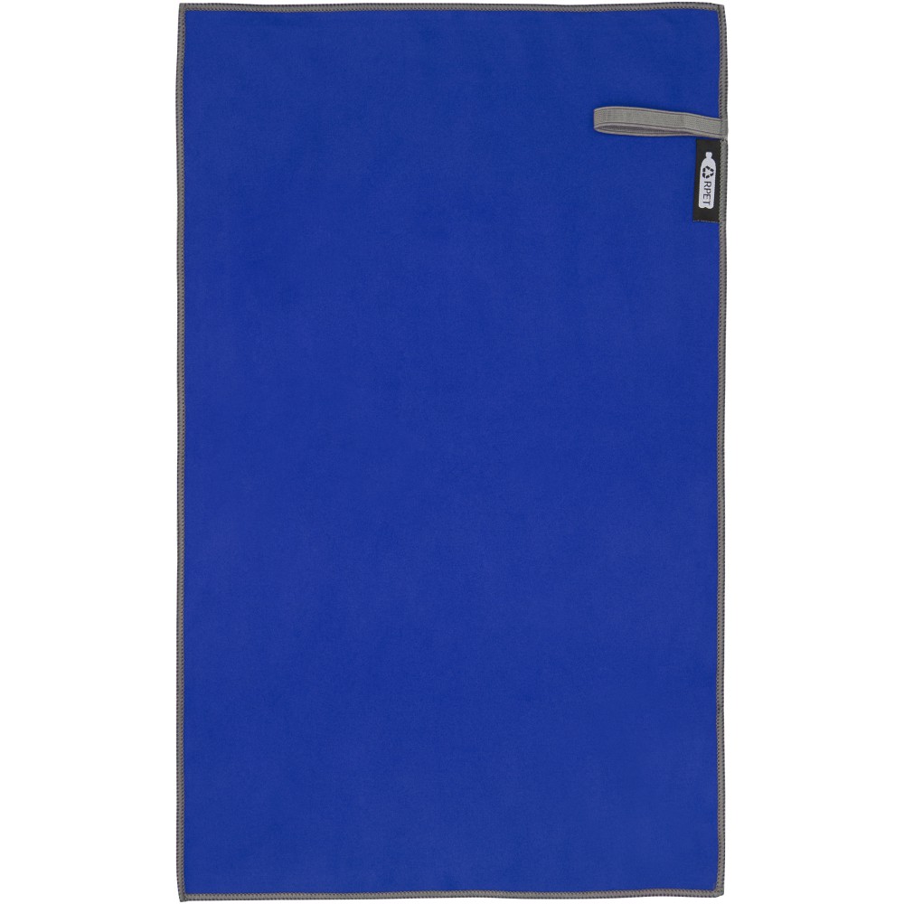 A Pieter sporttörülköző nagyon jó nedvszívó, könnyű, gyorsan szárad, az anyaga pedig tartós és rendkívül puha. Ha a törölközőt összehajtjuk és gumiszalaggal rögzítjük, kis méretűre csomagolható, így alkalmas arra, hogy magunkkal vigyük az edzőterembe, uszodába, vagy ha hátizsákos túrára, esetleg kempingezésre megyünk. A törülköző 30 x 50 cm méretű, 90% GRS újrahasznosított poliészterből és 10% nejlonból készült, és 40 °C-on mosható mosógépben. Újrahasznosított PET műanyagból készült tároló tasakkal (15.5 x 10 cm) szállítjuk. Emblémázás: Hímzés, Szitanyomás