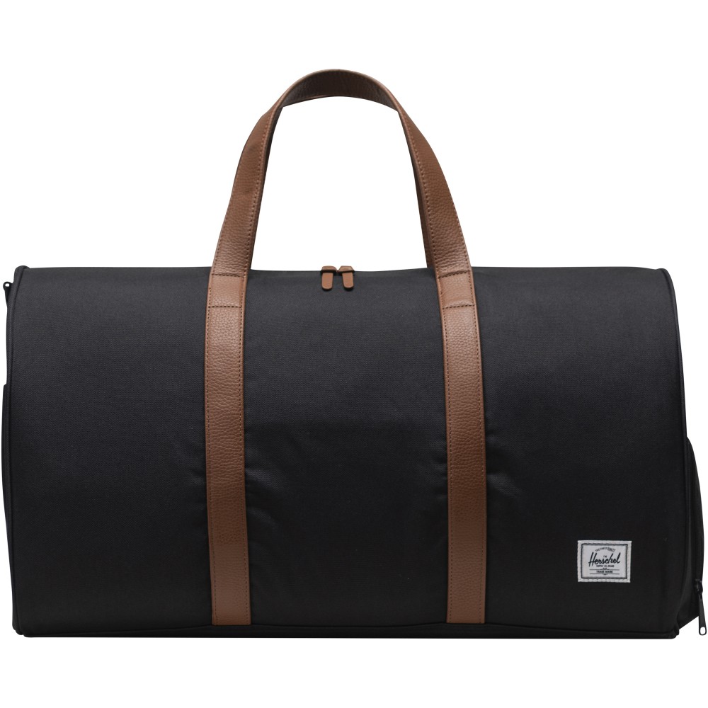 A tökéletes útitáskát keresed? A Herschel Novel táska a tiéd. Masszív tartósságra és intelligens szervezésre tervezték, és jellegzetes cipőrekesszel rendelkezik. A 100%-ban újrahasznosított EcoSystem szövetekből szakértelemmel készített táska kényelmesen elfér a repülőgépek fej feletti csomagtartójában is, így tökéletes útitárs. A 600D anyagot átgondoltan 100%-ban újrahasznosított vizespalackokból alakították ki, míg a vízálló cipzáras zárás biztosítja az értékes alapvető dolgok védelmét. Ez a táska vegán bőrből készült fogantyúval és levehető, sima hevederes vállpánttal rendelkezik, amely EVA párnázással van ellátva a kényelmes hordozás érdekében. A Herschel Novel táska egy külső zsebbel is rendelkezik, amely lehetővé teszi, hogy könnyedén rendszerezze és hozzáférjen holmijaihoz. A 43 literes térfogatának köszönhetően tökéletes útitárs a következő kalandodhoz. Emblémázás: Szitanyomás