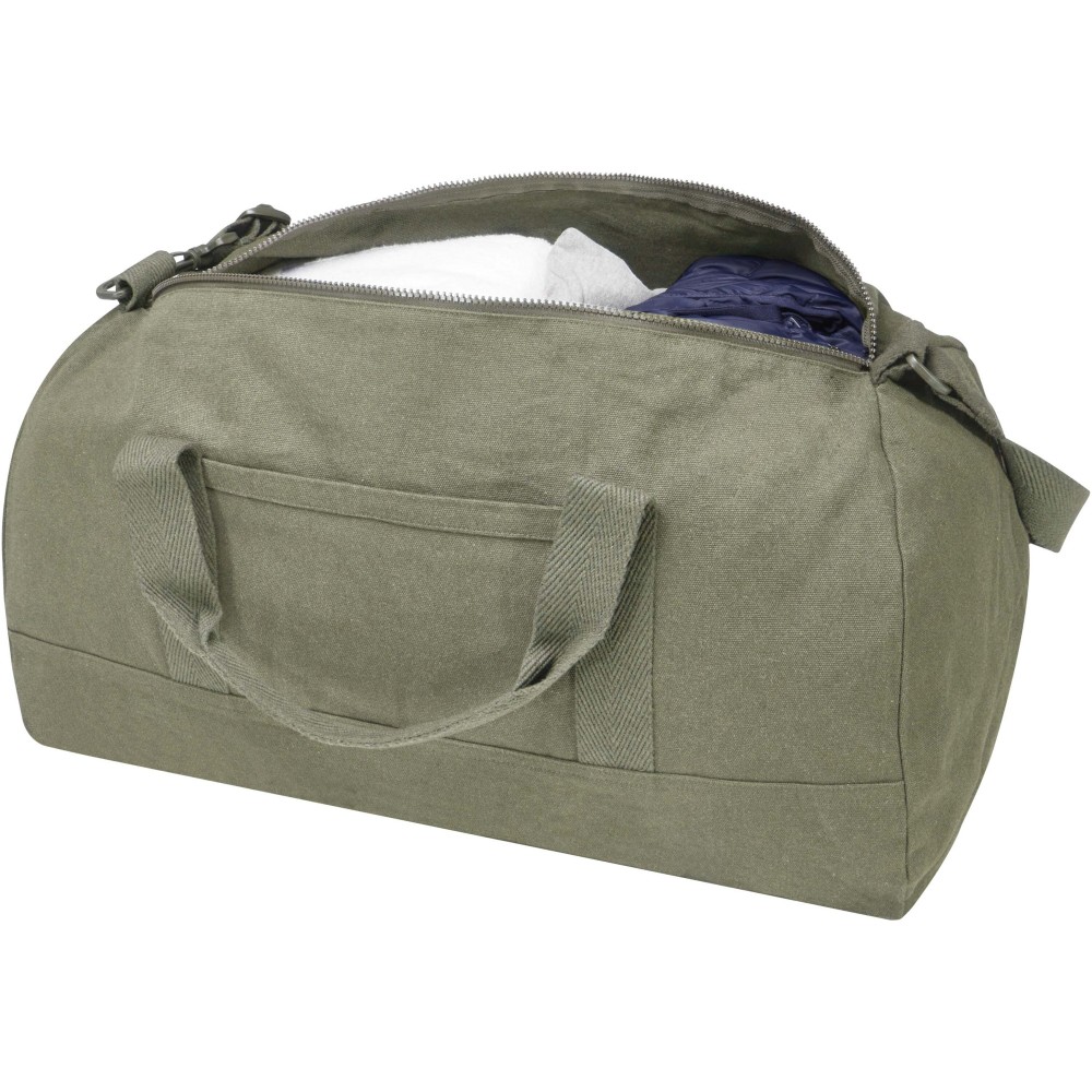 A Porter sporttáska 500 g/m2 újrahasznosított pamutból és poliészterből készült, tágas fő rekesszel a nagyobb tárgyak optimális tárolására, valamint egy kisebb elülső zsebbel, amely ideális például útlevél vagy mobiltelefon elhelyezésére. A táska kézben vihető a két rövid fogantyú segítségével, vagy a levehető és állítható vállpánttal, amely maximális kényelmet biztosít viselés közben. A sporttáska Cyclo újrahasznosított szálakat tartalmaz, amelyek előválogatott hulladékból készülnek - ennek megfelelően alakul a fonal természetes színe is. Ezek a szálak nemcsak a primer nyersanyagok iránti igényt csökkentik, hanem hozzájárulnak a körforgásos gazdaság megvalósításához, elősegítve a hulladék csökkentését és a zárt rendszerű gyártást. Minden táska Aware nyomkövetővel van ellátva, amely QR-kód segítségével lehetővé teszi a termék eredetének és útjának nyomon követését. Ez az innovatív megoldás növeli az ellátási lánc átláthatóságát, és erősebb kapcsolatot teremt a vásárló és a gyártási fol Emblémázás: Hímzés, Szitanyomás
