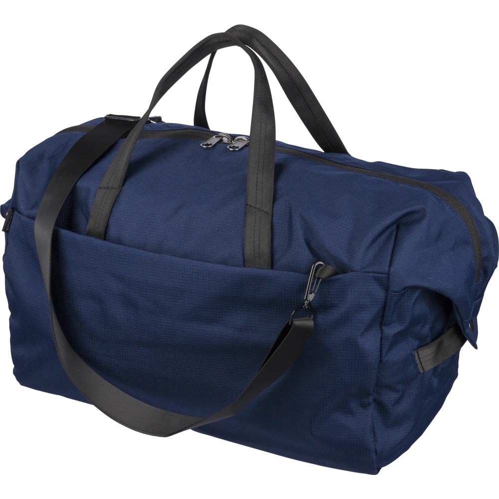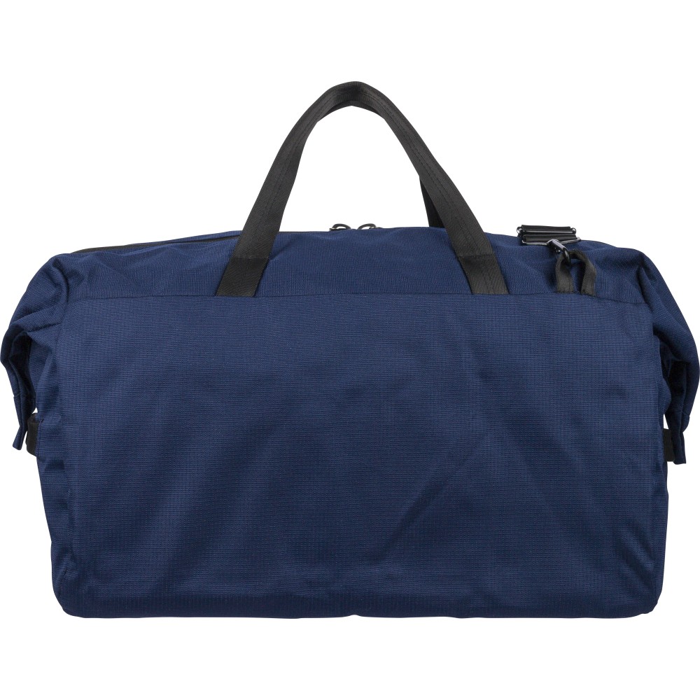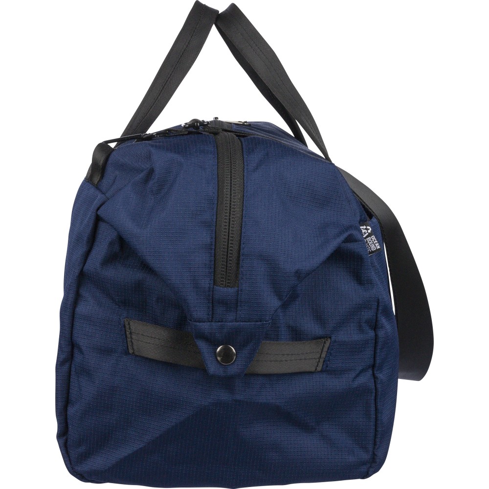 RPET 300D Ocean Bound anyagból készült sporttáska, amely újrahasznosított óceáni műanyagból készül, tartós és texturált felületű kivitelben. 33,7 literes űrtartalommal rendelkezik, nagy fő rekesszel, elülső cipzáras zsebbel és belső cipzáras tárolóval. Két erős fogantyúval, állítható vállpánttal és Ocean Bound Plastic alapanyagra utaló címkével ellátva. Emblémázás: Szitanyomás