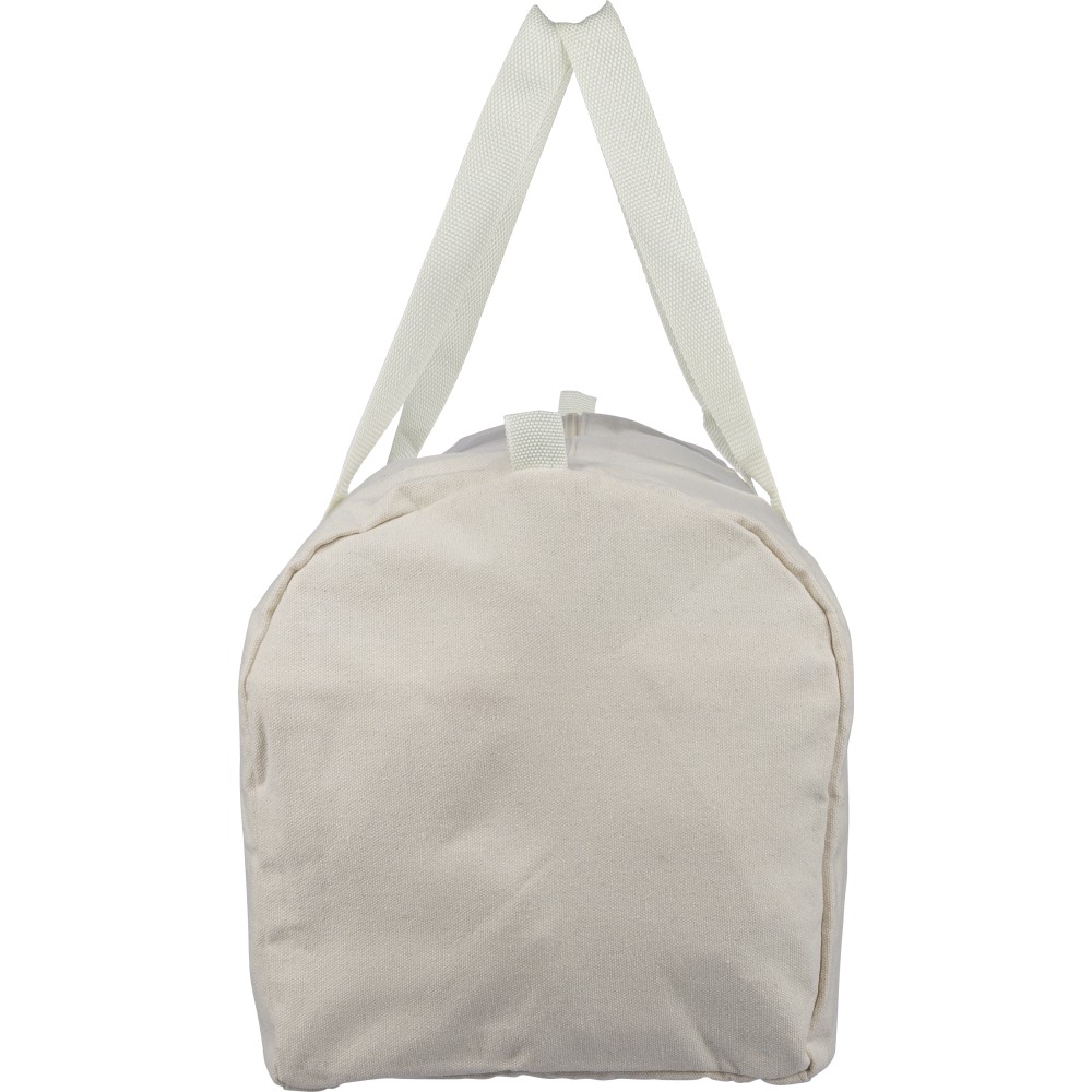 Újrahasznosított pamut-poliészter, 330 g/m2 kevertszövetből készült sporttáska nagy, cipzáras felső rekesszel, 100 cm hosszúságú és 3 cm szélességű hosszú fülekkel, a táska színével megegyező hevederrel. Megközelítőleg 30 literes űrtartalommal rendelkezik. A külső felületen rPET címkével, a belső részben újrahasznosított alapanyagra utaló címkével ellátva. Emblémázás: Szitanyomás