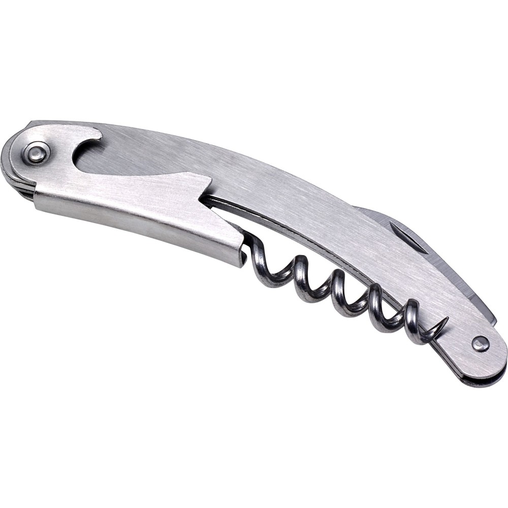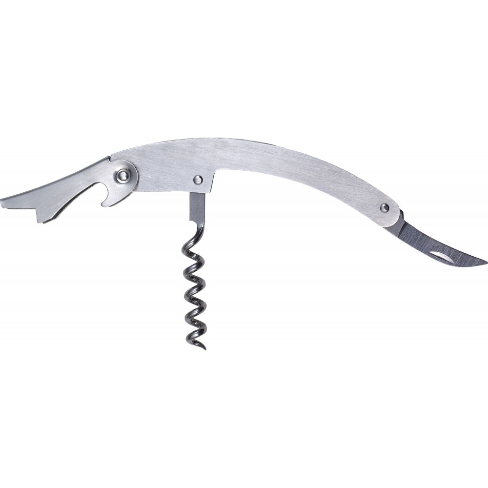 Pincérbicska üvegnyitó, dugóhúzó és fóliavágó funkcióval. Rozsdamentes acél. Emblémázás: Gravírozás, Tamponnyomás