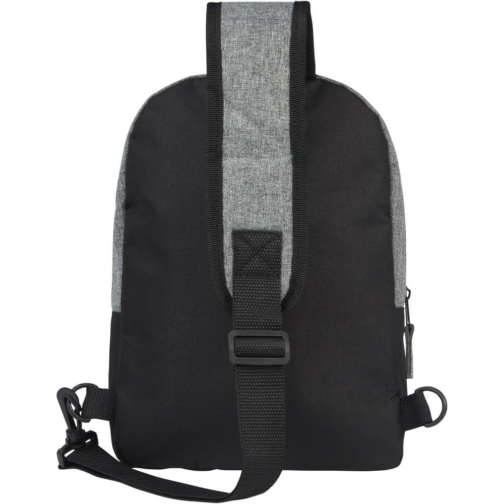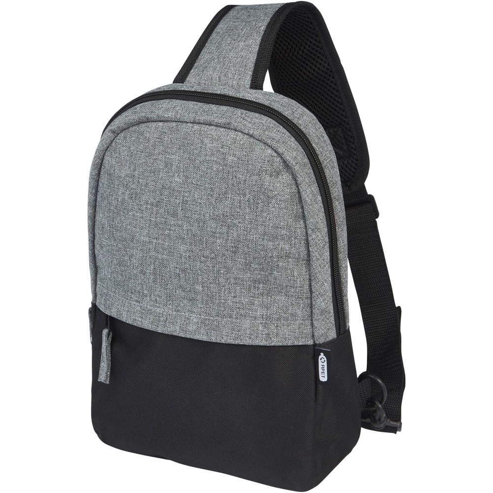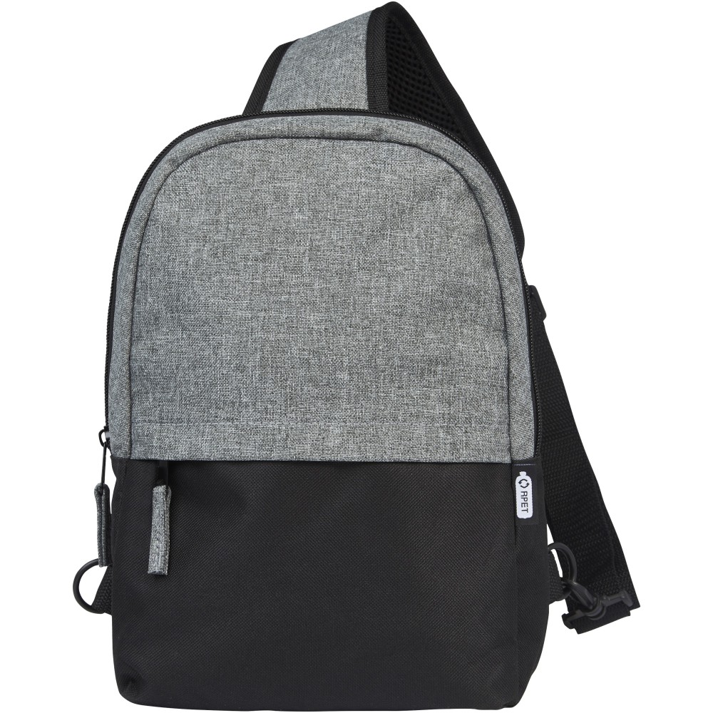 A külseje 100%-ban újrahasznosított anyagokból készült, kéttónusú GRS újrahasznosított, 1 cipzáras elülső zsebbel, valamint egy cipzáros főrekesszel rendelkezik, amely egy 12 -os tablet-tartót is tartalmaz. A biztonságos tárolás érdekében egy cipzáros belső zseb is található benne. Állítható és párnázott vállpántja kényelmesen hordozható. Emblémázás: Szitanyomás