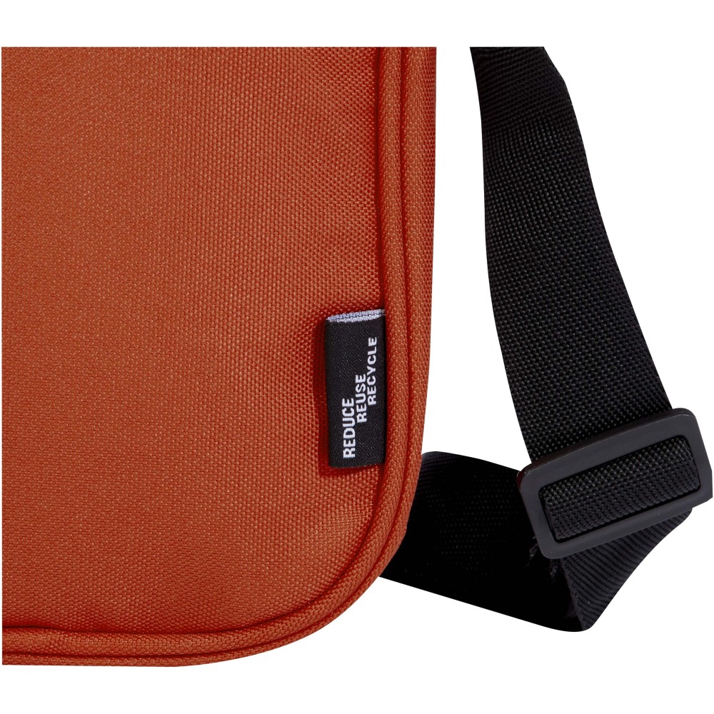 Praktikus és vízlepergető válltáska GRS újrahasznosított poliészterből. Egy cipzáras rekesszel és egy belső zsebbel rendelkezik, hogy a mindennapi eszközeid biztonságban legyenek. Egy cipzáras elülső zsebbel a kulcsok és az értékes kiegészítők számára, valamint egy nyitott zsebbel a hátoldalon a gyors tárolás érdekében. Az állítható, kiváló minőségű vállpántoknak köszönhetően a Byron válltáska tökéletes a mindennapi használatra, minimális ökológiai lábnyom mellett. PVC-mentes. Emblémázás: Szitanyomás