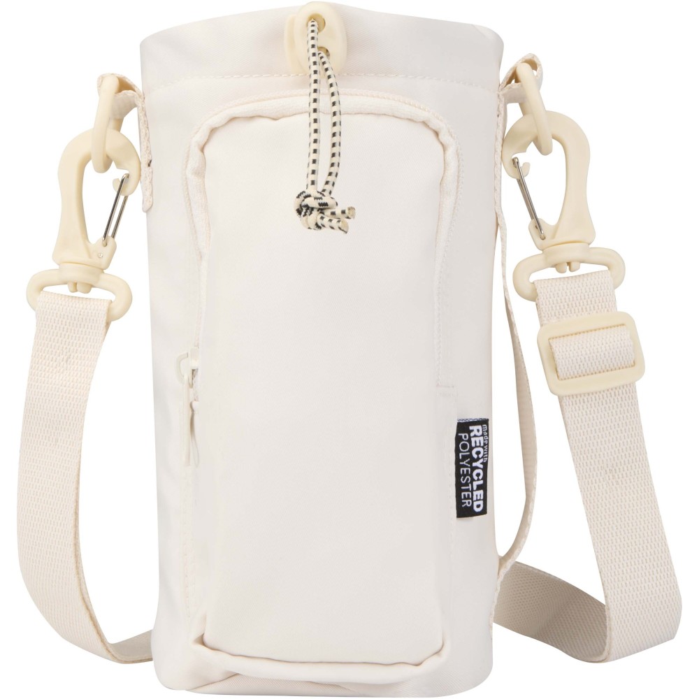 A Trip Aware® újrahasznosított utazó kulacstartó táska praktikus és könnyű megoldás a folyadékpótlás biztosítására útközben. Tartós 290D twill poliészterből készült, kötött hátoldallal és RPET 210D/PU béléssel, így egyszerre nyújt tartósságot és átgondolt kialakítást. Fő rekesze húzózsinórral záródik, és alkalmas mind nagyobb, füllel ellátott, mind kisebb palackok tárolására, a hátsó nyílás pedig könnyű hozzáférést biztosít. Elülső zsebében elférnek az alapvető holmik, például a telefon, ezen belül belső nyitott zseb és szalag a kulcsok rögzítéséhez. Az állítható pánt és az oldalsó fogantyú rugalmas hordozási lehetőségeket kínál. Minden táska Aware® nyomkövetővel érkezik, amely QR-kód segítségével lehetővé teszi a termék eredetének és útjának nyomon követését, növelve az ellátási lánc átláthatóságát és a kapcsolatot a termék gyártási folyamatával. Űrtartalom: 2 liter. Emblémázás: Szitanyomás