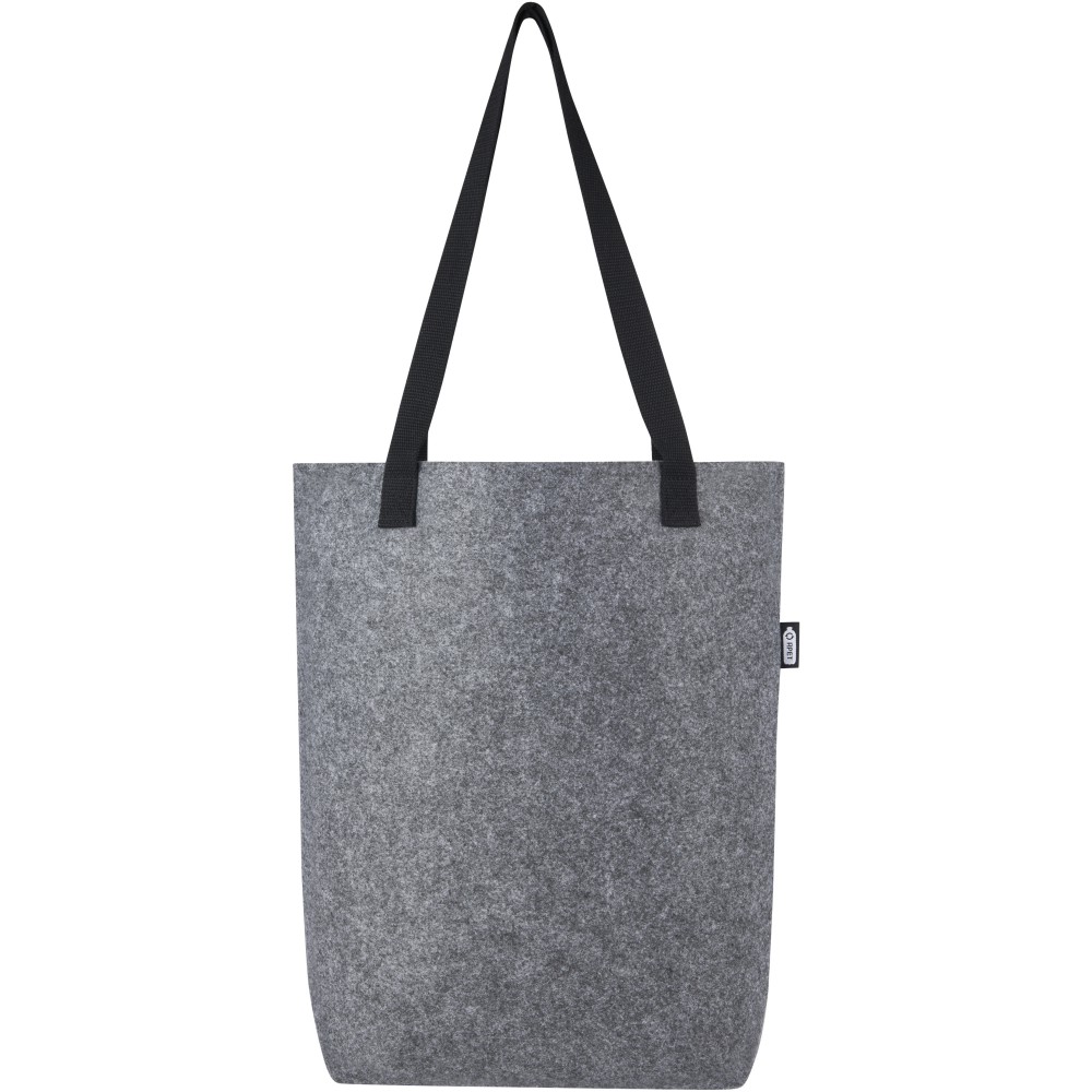 Praktikus hordtáska puha és tartós, kiváló minőségű, GRS tanúsítvánnyal rendelkező újrahasznosított filcből. Hosszú, szőtt, pamut fogóval (30 x 2,5 cm) rendelkezik az optimális kényelemért, és extra széles aljával a maximális tárolóhely érdekében. Emblémázás: Hímzés, Szitanyomás