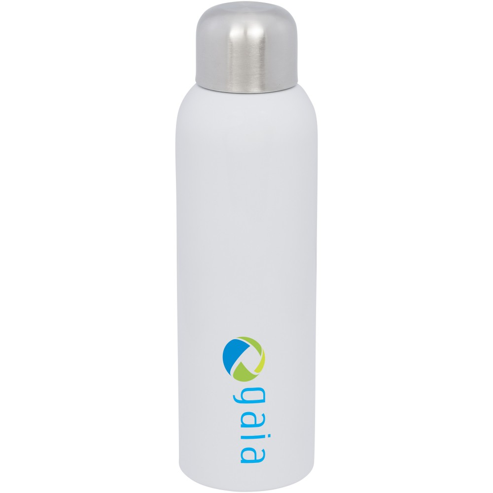 A Guzzle egy elegáns kialakítású vizespalack csavaros fedéllel a könnyű nyitás és zárás érdekében. Szivárgásmentes. Szénsavas italokkal nem használható. Mosogatógépben nem mosható és mikrohullámú sütőben történő melegítésre nem alkalmas. Űrtartalom: 820 ml. A palack rozsdamentes acélból készült, ezért robusztus és hosszú élettartamú. Ráadásul a palack elegendő lehetőséget kínál bármilyen logó vagy üzenet egyedi megjelenítésére. Emblémázás: Gravírozás, Körszita, Tamponnyomás