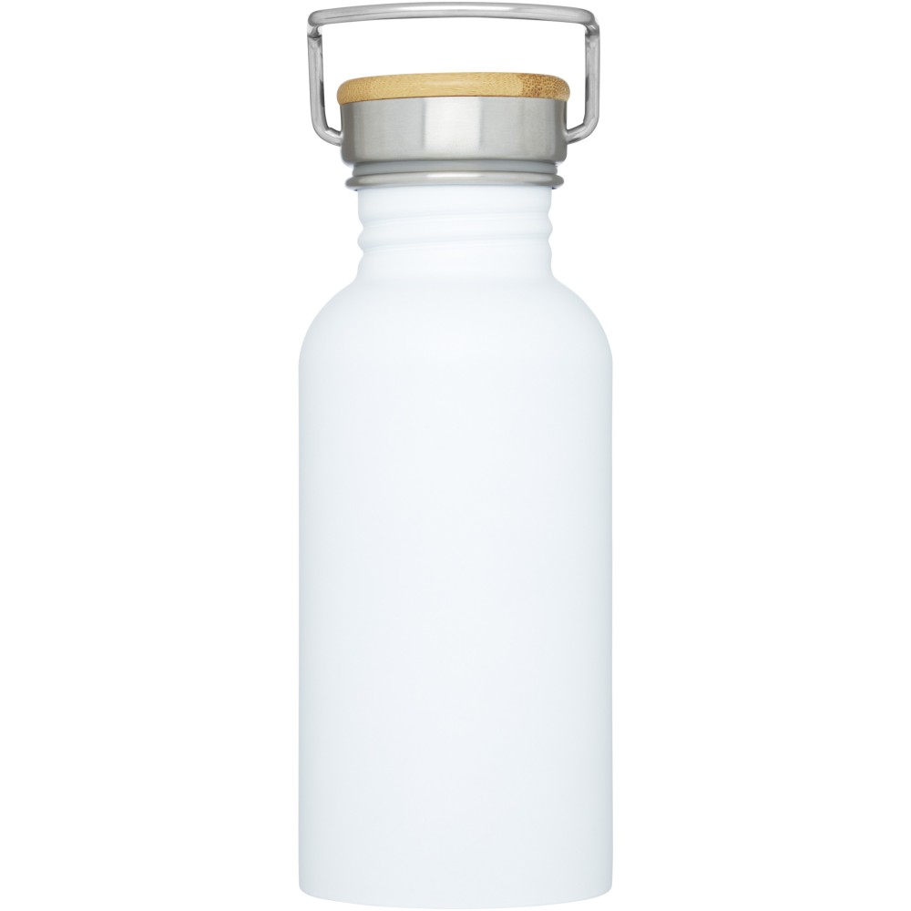 Egyfalú rozsdamentes acél palack csavaros tetővel. A fedélen bambusz rátét, valamint egy fül a könnyű hordozhatóságért. Szivárgásmentes. Szénsavas italokkal nem használható. Mosogatógépben nem mosható és mikrohullámú sütőben történő melegítésre nem alkalmas. Űrtartalom: 550 ml. Csomagolása Avenue díszdoboz. Rozsdamentes acél, bambusz. Emblémázás: Bögredekor, Gravírozás, Körszita, Tamponnyomás