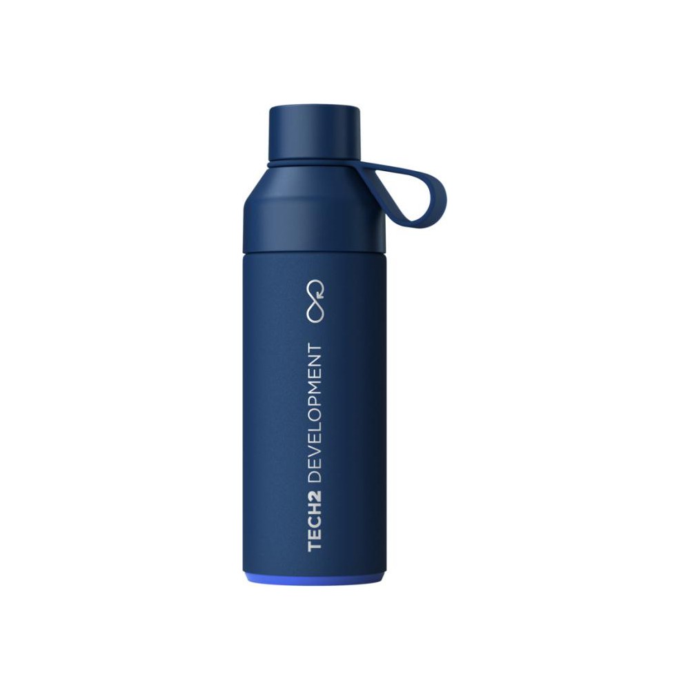 Az 500 ml-es, vákuumszigetelt Ocean Bottle az italokat akár nyolc órán át melegen, és akár tizennyolc órán át hidegen tartja. Minden Ocean Bottle teljesen szénsemleges, és gyártása során 1000 műanyag palack kerül összegyűjtésre, hogy javítsa a tengerparti közösségek megélhetését. A palack újrahasznosított rozsdamentes acélt és újrahasznosított óceánhoz kötődő műanyagot tartalmaz, és az NFC Smart Chip lehetővé teszi, hogy minden újratöltéskor több műanyagot gyűjtsön össze . A kettős nyílás megkönnyíti a palack tisztítását és feltöltését, a szivárgásgátló fedél pedig könnyen szállítható hurokkal rendelkezik. A palack mosogatógépben mosható és BPA-mentes. 70% újrahasznosított rozsdamentes acél és 10% PET műanyag és 10% újrahasznosított PET műanyag és 10% szilikon műanyag. Emblémázás: Gravírozás, Tamponnyomás