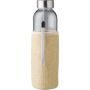 Üveg vizespalack rozsdamentes acél kupakkal, juta borítással és csuklópánttal. Csomagolása kraft papírdoboz. Űrtartalom: 500 ml. Emblémázás: Bögredekor, Gravírozás, Szitanyomás, Tamponnyomás