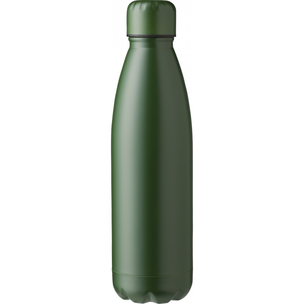 Rozsdamentes acél, szimplafalú palack matt bevonattal. Kristályszerkezet alapján belül 304-es, kívül: 201-es. Csomagolása barna papírdoboz. Űrtartalom: 750 ml. Emblémázás: Bögredekor, Gravírozás, Körszita, UV nyomtatás