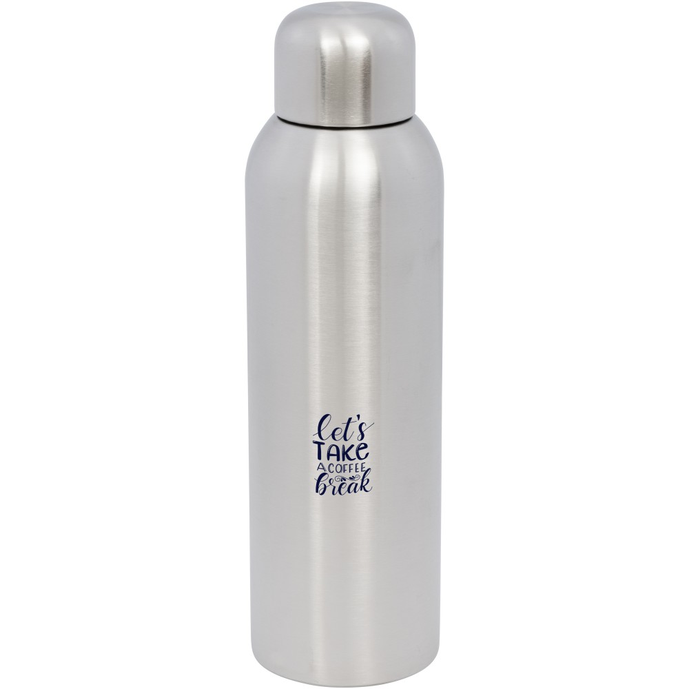 A Guzzle egy elegáns kialakítású, újrahasznosított vizes palack, amelynek csavaros fedele könnyen nyitható és zárható. Az egyfalú palack tökéletes utazásokhoz, mivel nem kevesebb, mint 820 ml folyadék tárolására alkalmas. A palack RCS tanúsítvánnyal rendelkező, újrahasznosított rozsdamentes acélból készült, ezért strapabíró és hosszú élettartamú. Emblémázás: Gravírozás