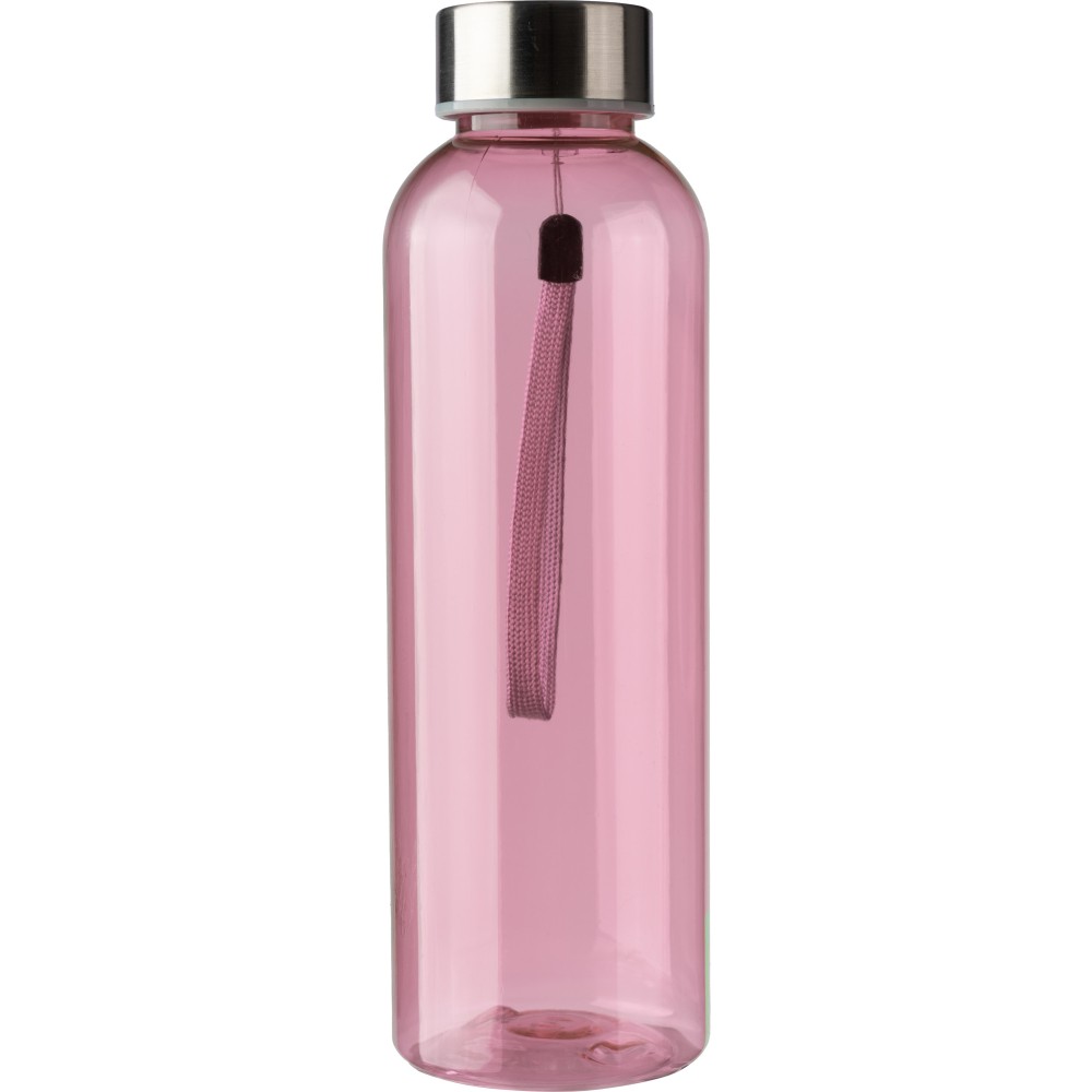 RPET palack rozsdamentes acél fedéllel és csuklópánttal. Űrtartalom: 500 ml. Emblémázás: Körszita, Tamponnyomás, UV nyomtatás
