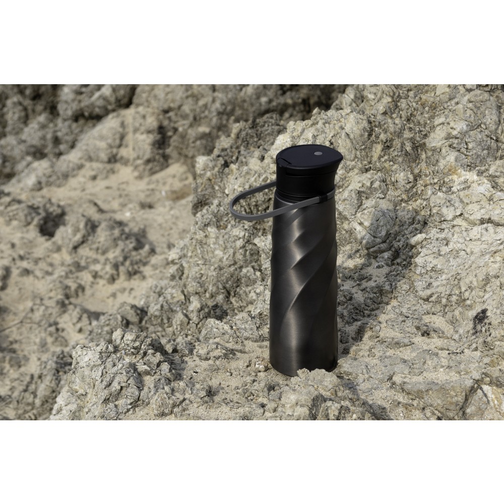 A Vortex Athletica ivópalack a magas funkcionalitást elegáns dizájnnal ötvözi, amely kihangsúlyozza a prémium anyagokat. Könnyű, egyfalú 18/8 rozsdamentes acélból készült, mindössze 238 g súlyú, és a tartósság a fő erénye. A fedél a könnyű tisztítás érdekében teljesen szétszedhető, a rugalmas hordozószíj pedig a személyes igényekhez igazítható. Ennek az 1000 ml-es rozsdamentes acél palacknak minden része mosogatógépben mosható. Emblémázás: Gravírozás