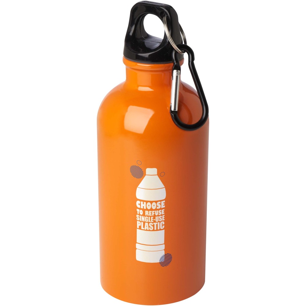 Mindig maradj hidratált ezzel a tartós, mégis könnyű palackkal, amely RCS tanúsítvánnyal rendelkező újrahasznosított rozsdamentes acélból készült. Tökéletes társ sportoláshoz, napi kirándulásokhoz vagy az irodában való használatra. Az egyfalú Oregon palack csavaros kupakkal rendelkezik, és bőséges helyet kínál bármilyen logó nyomtatására. Rögzítsd a mellékelt karabinert (mászásra nem alkalmas) biztonságosan egy táskához, hogy ne vesszen el. Űrtartalom: 400 ml. Emblémázás: Bögredekor, Gravírozás, Körszita, Tamponnyomás