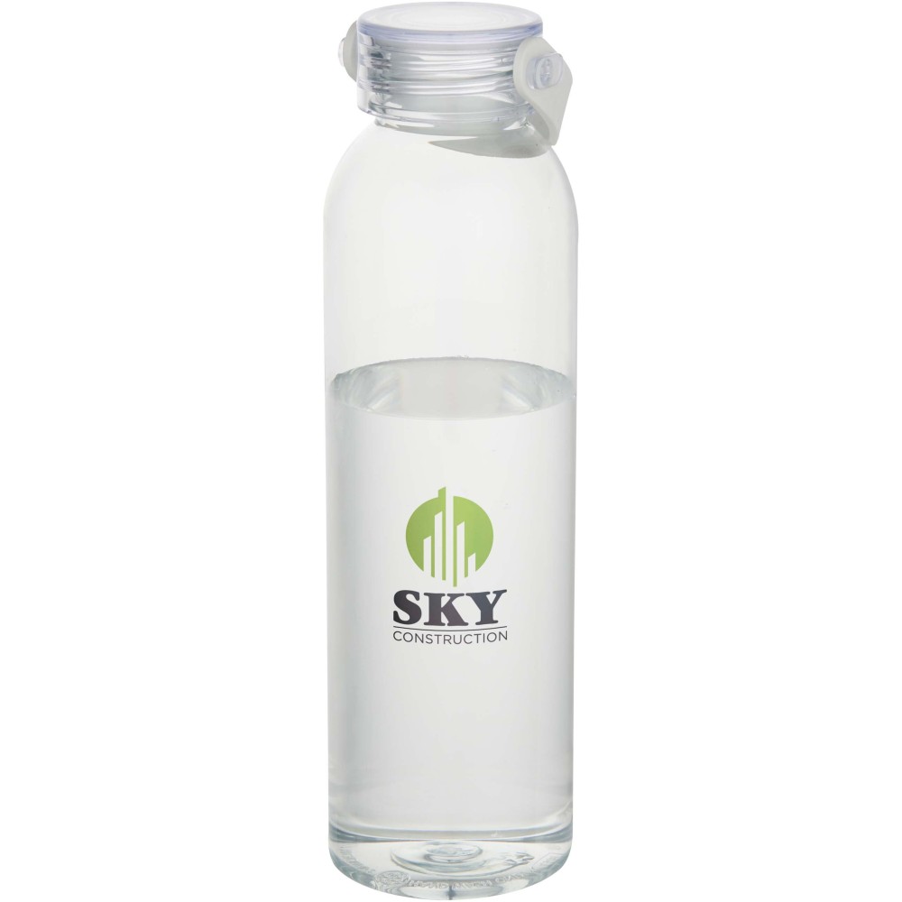 RCS tanúsítvánnyal rendelkező RPET-ből készült kulacs, praktikus szilikon hordozófüllel. Megfelel az EFSA által jóváhagyott PET-újrahasznosítási eljárásnak. Űrtartalom: 630 ml. Emblémázás: Körszita