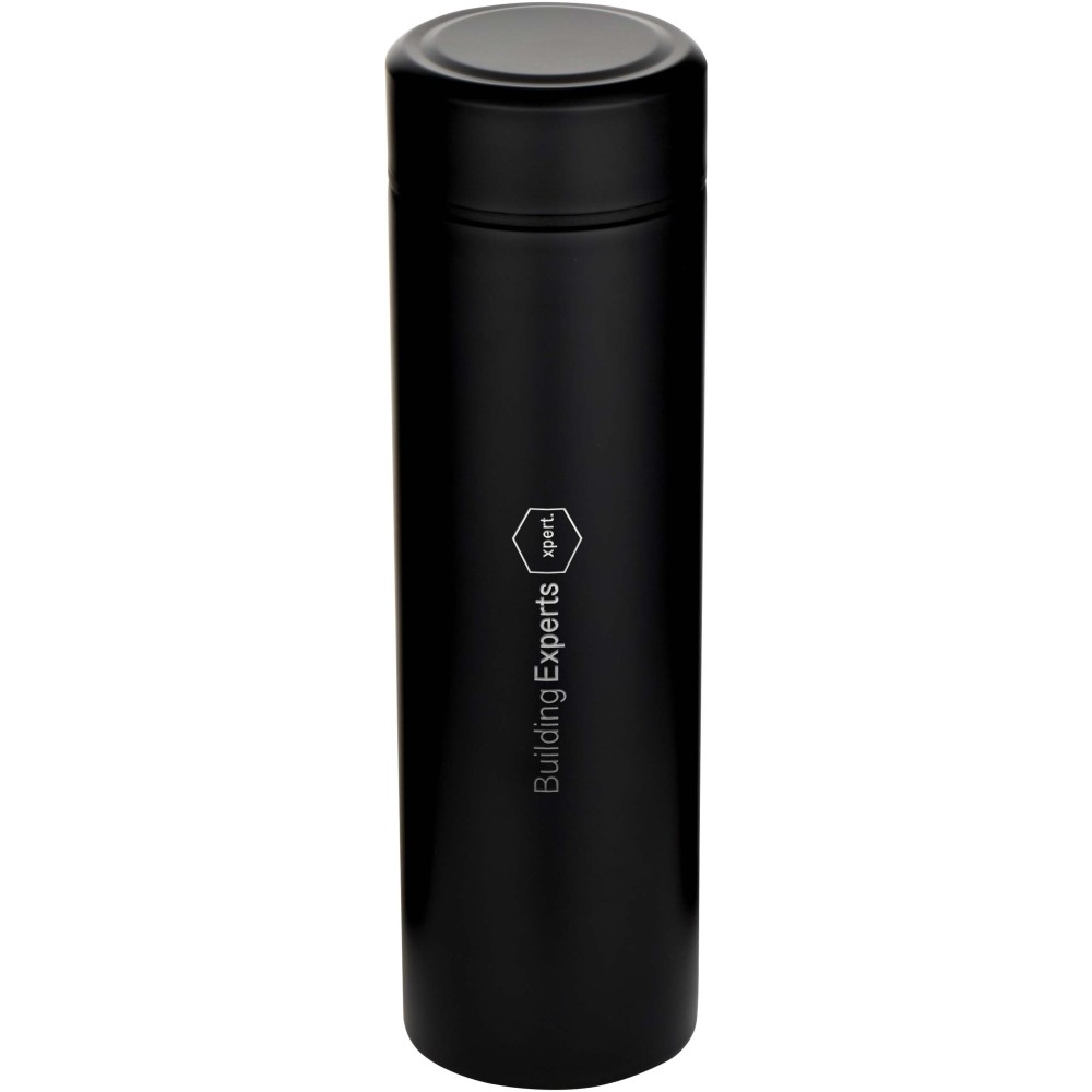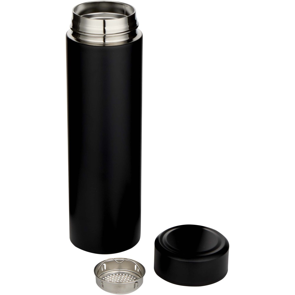 Duplafalú, vákuumszigetelt rozsdamentes acélból készült termosz, amely hosszú ideig tartja az italokat a kívánt hőmérsékleten. A kényelmesebb használat érdekében egy kivehető teaszűrőt tartalmaz. A 450 ml-es űrtartalom és a szivárgásmentes kialakítás révén ideális választás a mindennapi használatra vagy utazásokhoz. Emblémázás: Bögredekor